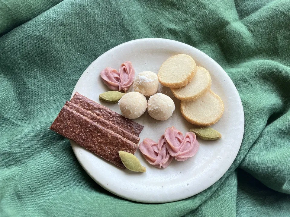 - 有機レーズンからおこし米粉で育てた自家製酵母のコクのある味わい、サクサク、ザクッ、パリッと食感の違う5種類のクッキーです。