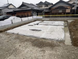 地面からの湿気を防ぐためのシート施工です🌧️